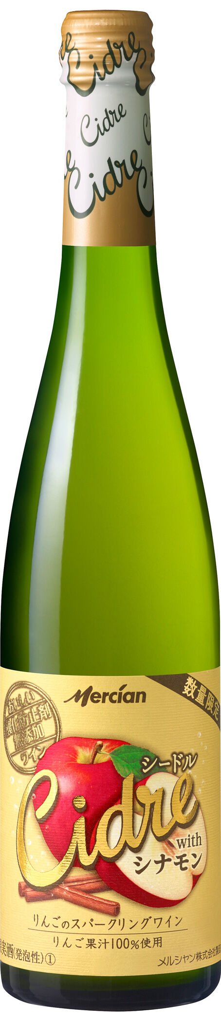 メルシャンから11月4日(水)に発売される「おいしい酸化防止剤無添加ワイン シードル with シナモン」。