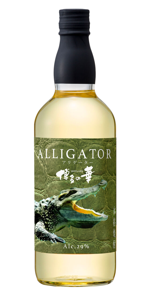 「博多の華 麦 アリゲーター」は、「アリゲーターチャー(※)」と呼ばれる、焼き入れ加工(チャーリング)をした樫樽に貯蔵した麦焼酎原酒をブレンドした、スモーキーなフレーバーと濃醇な味わいが特長の琥珀色の本格麦焼酎です。