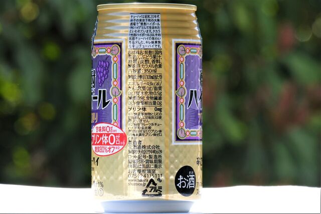 原材料は、焼酎(国内製造)、ぶどう果汁、糖類/炭酸、香料、酸味料、カラメル色素。