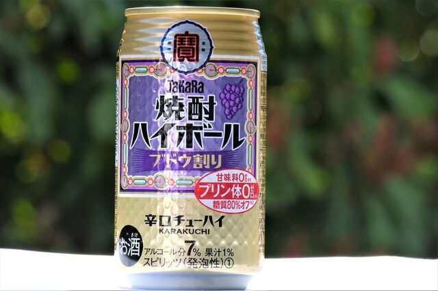 <ブドウ割り>はキレ味爽快な辛口の味わいとブドウのしっかりとした芳醇な香りが楽しめるチューハイです。焼酎ハイボールが生まれた東京下町の大衆酒場では、焼酎をブドウシロップ(エキス)で割って飲む“ブドウ割り”が長きにわたり親しまれています。このブドウ割りを“タカラ「焼酎ハイボール」”ならではの、キレのある辛口の味わいで仕上げました。とのこと。ぶどう果汁果汁なんじゃなくって、ぶどうシロップイメージなんですね。なるほど再現度が高いです。