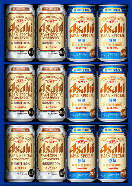 今年の中元ギフトセットは、主力の『アサヒスーパードライ』、ギフト限定の特別限定醸造商品として好評をいただいている国産原料100%の『アサヒスーパードライ ジャパンスペシャル』のセットに加え、中元ギフト限定で『アサヒスーパードライ ジャパンスペシャル涼味りょうみ』を新発売します。