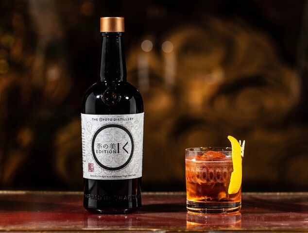 クラシックカクテル、ネグローニをツイストした特別な一杯。ミキシンググラスでよく冷やした「季の美 京都ドライジン エディションK」とビターオレンジ リキュール 、そしてベルモットをグラスに注ぎ、オレンジピールを添えて完成です。