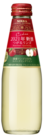 「ニッカ シードルヌーヴォスパークリング2021」は、通常のリンゴよりも収穫時期の早い早生品種である「国産つがるリンゴ」を100%使用して醸造した新酒のスパークリングワインです。