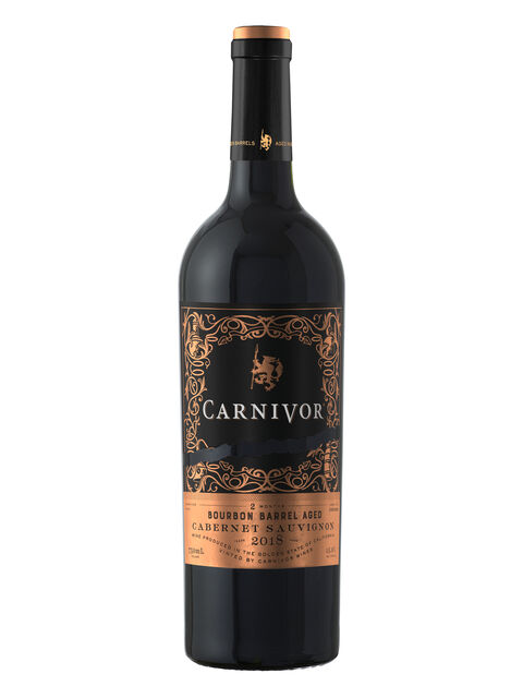 「カーニヴォ バーボンバレル カベルネ・ソーヴィニヨン 2018」は力強い骨格でありながら、なめらかでスムースな口当たりに仕上げました。「カーニヴォ」が本来持つダークチェリーやプラムの香りに、バーボンバレル熟成による濃密で甘い果実の香りとチョコレートやバニラを思わせる風味が重なり合った味わいです。パッケージは、黒色を基調にポットスチルやバーボンバレルをイメージした黄金色をあしらったデザインを採用。また、通年品と同様に肉食獣をモチーフにしたイラストを配し、“肉好きのためのワイン”であることを表現しています。