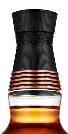シックな黒の地色に輝くコッパーカラーの5つのリングは、ブレンドに使われている5種類のモルトウイスキーを象徴。