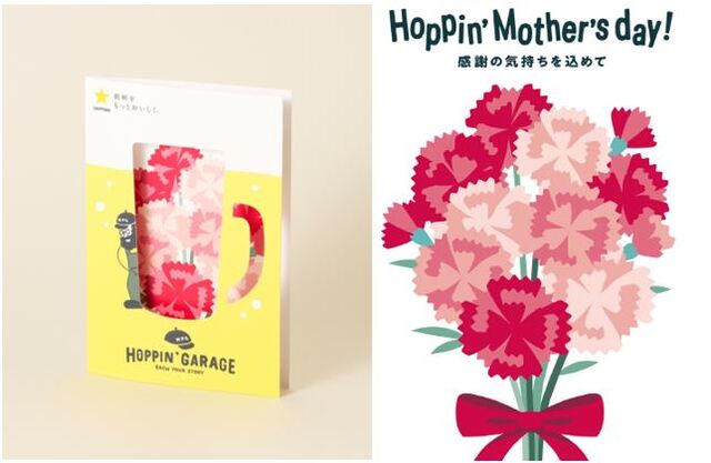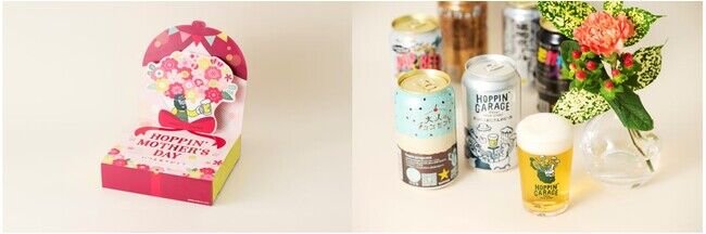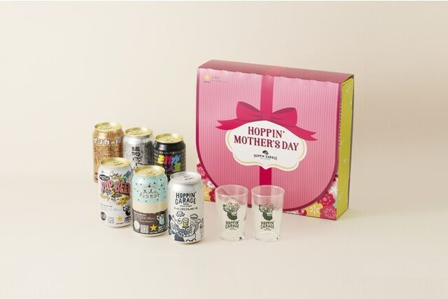 同商品は「HOPPIN' GARAGE」の最新作「HOPPIN’ GARAGE それが人生」を含む6種の人気商品と、感謝を伝える母の日メッセージカードとペアグラスがセットになっています。