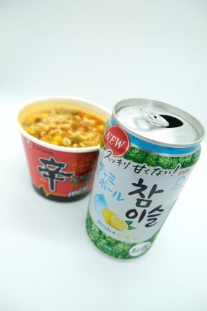 今回は、これもいただいた「辛ラーメン ミニカップ」で合わせてみたのですが、内から汗が出てくる辛ラーメンの辛さをスパッと打ち消すようなキレ感で、相性ピッタリな感じでした。