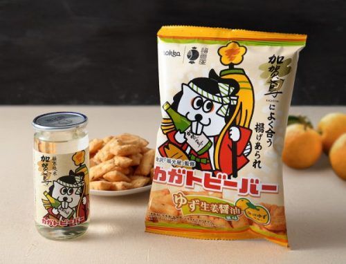 北陸・石川の人気揚げあられ「ビーバー」の限定フレーバーとして特別に開発された「カガトビーバー ゆず生姜醤油風味」(金沢ゆず使用)と相性抜群です。
